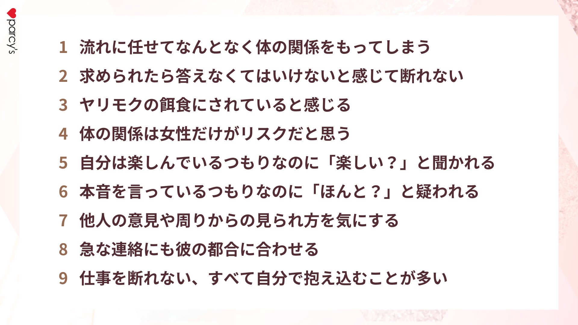 なかには「これが体の関係止まりの恋愛とどう関係するの?」と疑問を持つような項目もあると思う。