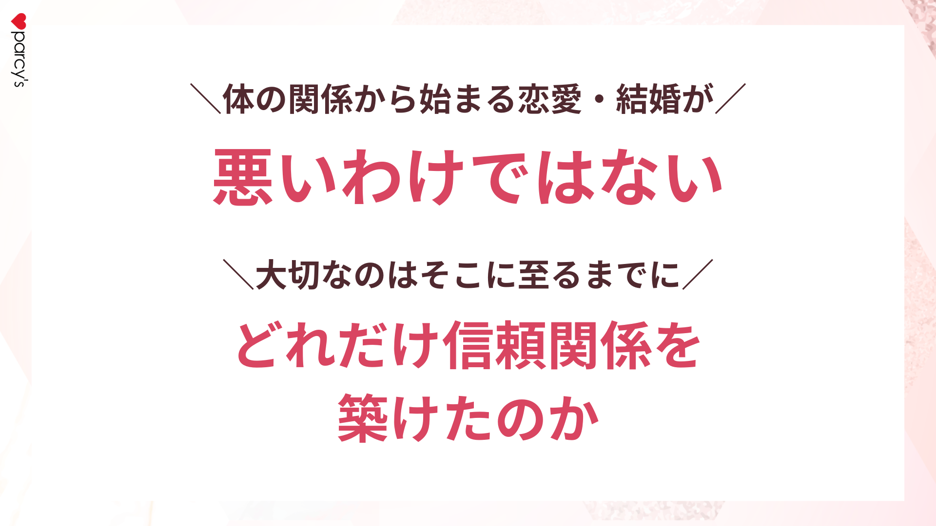 体の関係から始まる恋愛・結婚が悪いわけではないというわけではない。