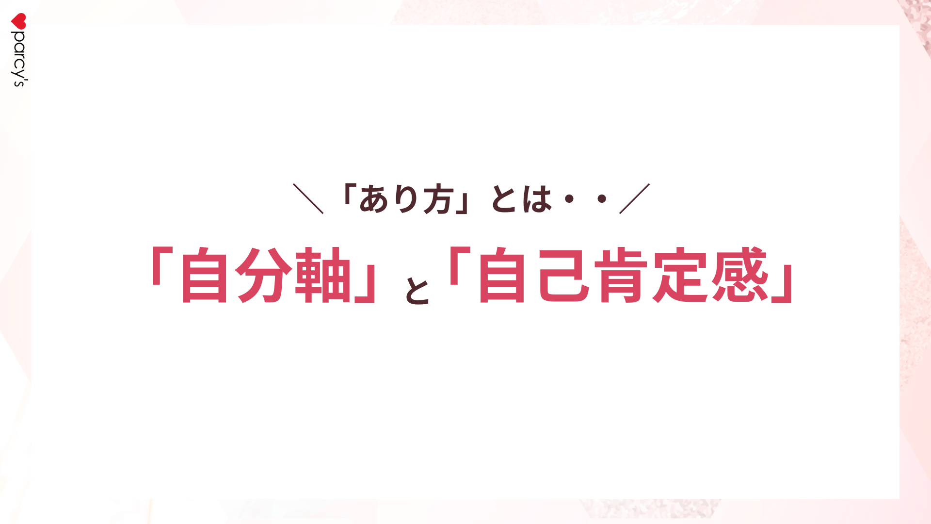 あり方とは、大きく「自分軸」と「自己肯定感」の2つで構成される。