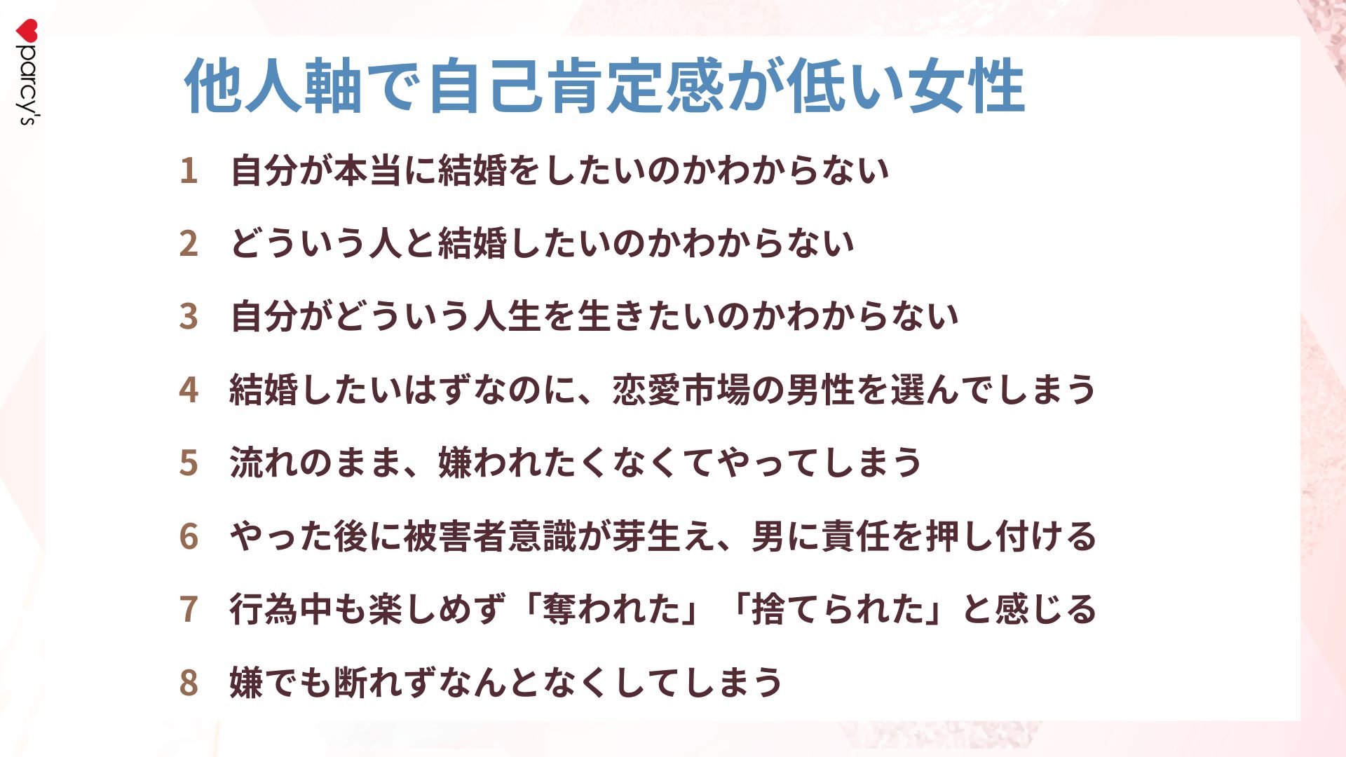 「他人軸で自己肯定感が低い女性」の恋愛傾向