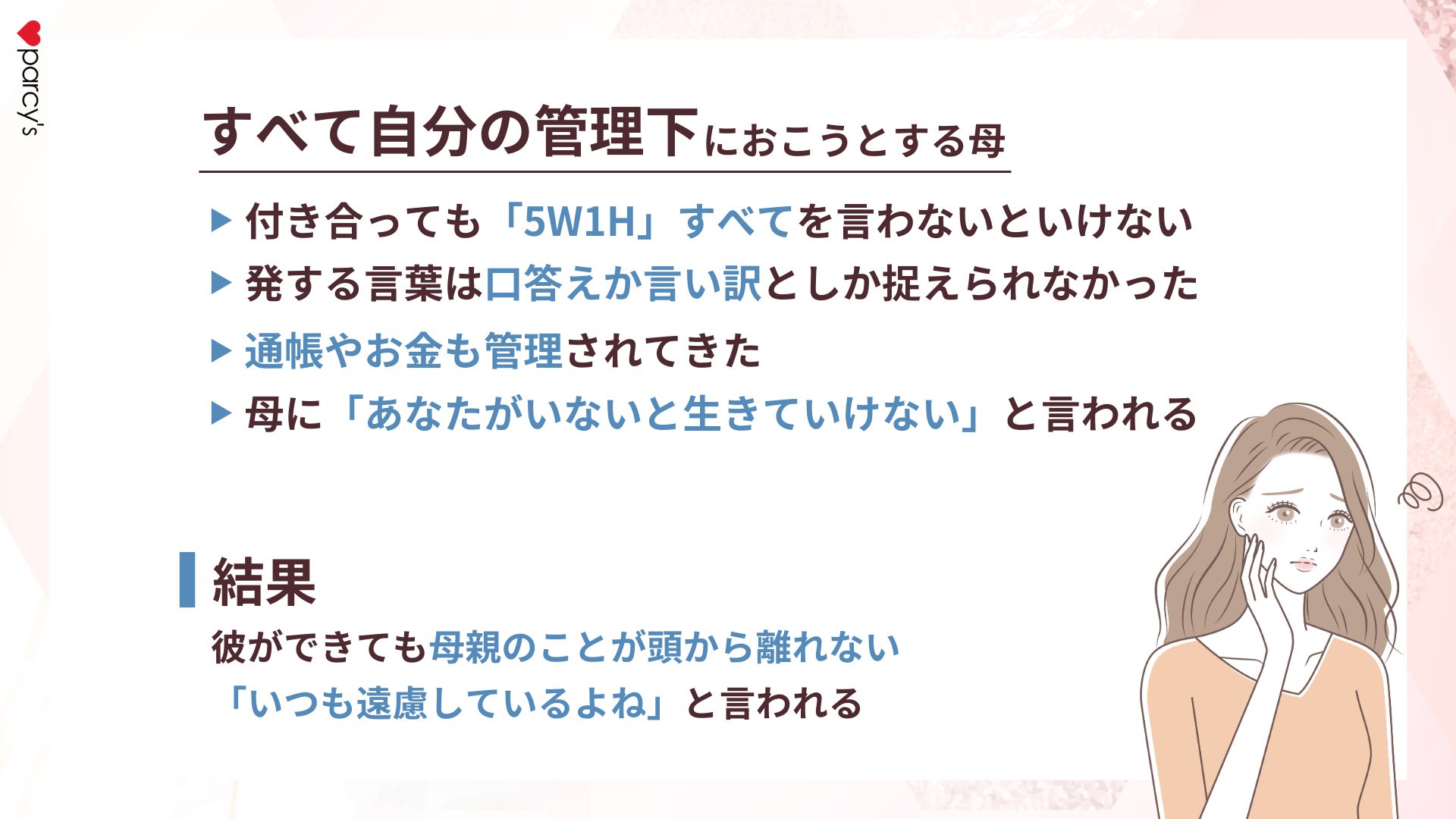 こういう親のもとで育った女性は、彼ができても母親のことが頭から離れない。