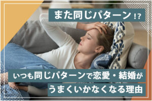 2022.05.25 AKIRA 「また同じパターン!?」いつも同じパターンで恋愛・結婚がうまくいかなくなる理由 FacebookでシェアTwitterでシェア Tweet FacebookでシェアTwitterでシェア parcy's note(パーシーズノート) > Full width page > parcy’sメソッド > 自己肯定感を高める方法 > 「また同じパターン!?」いつも同じパターンで恋愛・結婚がうまくいかなくなる理由 > 「また同じパターン!?」いつも同じパターンで恋愛・結婚がうまくいかなくなる理由
