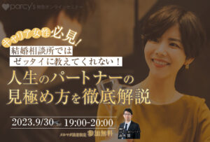 2023.09.25 AKIRA eventcover2309-1-2 FacebookでシェアTwitterでシェア FacebookでシェアTwitterでシェア parcy's note(パーシーズノート) > ランディングページ > オンラインセミナー『結婚相談所では絶対に教えてくれない!人生のパートナーの見極め方を徹底解説』 > eventcover2309-1-2