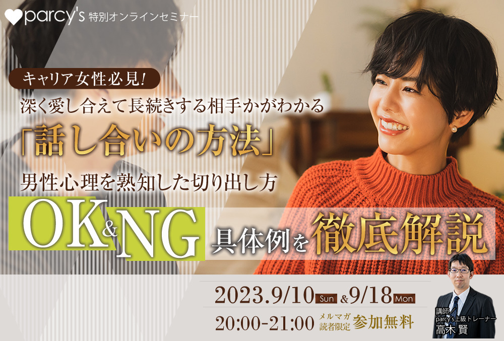 2023.08.30 AKIRA eventcover2309-2 (1) FacebookでシェアTwitterでシェア FacebookでシェアTwitterでシェア parcy's note(パーシーズノート) > ランディングページ > オンラインセミナー『男性心理を熟知した結婚相手を見極める「話し合いの方法」〜相手の本音の引き出し方NG・OK具体例を徹底解説〜』 > eventcover2309-2 (1)