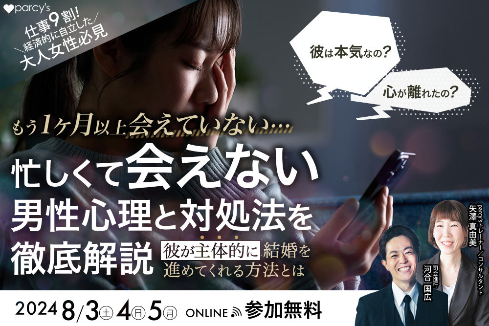 『もう1ヶ月以上会えてない・・忙しくて会えない男性心理と対処法を徹底解説〜彼が主体的に結婚を進めてくれる方法とは〜』
