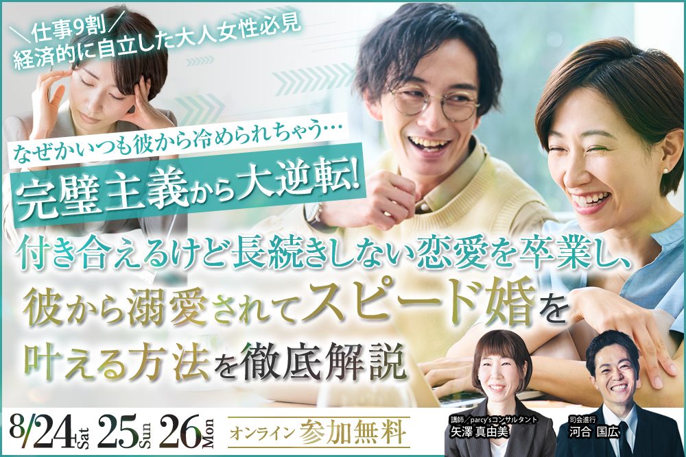今回のセミナーで、完璧主義の原因と抜け出し方を正しく理解して、あなたらしい幸せな結婚へ1ステップ歩みを進めてくださいね。