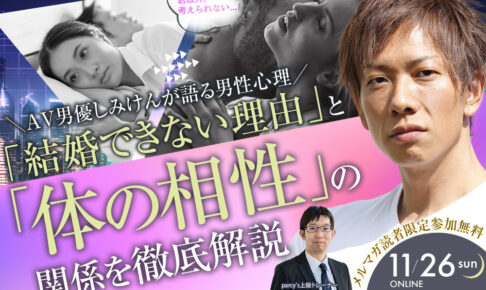 日時 2023年11月26日(日)19時~20時 大人気コラボ復活!! 11月は日本一有名なAV男優「しみけん」さんとコラボセミナーを開催するよ!! 今回のテーマは AV男優しみけんが語る男性心理 『結婚できない理由と「…