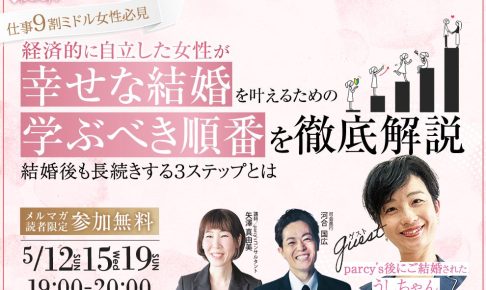 parcy’sオンラインセミナー『経済的に自立した女性が幸せな結婚を叶えるための「学ぶべき順番」を徹底解説』