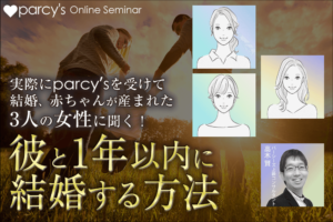 2022.07.31 AKIRA オンラインセミナー『実際にparcy’sを受けて結婚して赤ちゃんが産まれた3人の女性に聞く! 「彼と1年以内に結婚する方法」』 FacebookでシェアTwitterでシェア FacebookでシェアTwitterでシェア parcy's note(パーシーズノート) > ランディングページ > オンラインセミナー『実際にparcy’sを受けて結婚して赤ちゃんが産まれた3人の女性に聞く! 「彼と1年以内に結婚する方法」』 > オンラインセミナー『実際にparcy’sを受けて結婚して赤ちゃんが産まれた3人の女性に聞く! 「彼と1年以内に結婚する方法」』