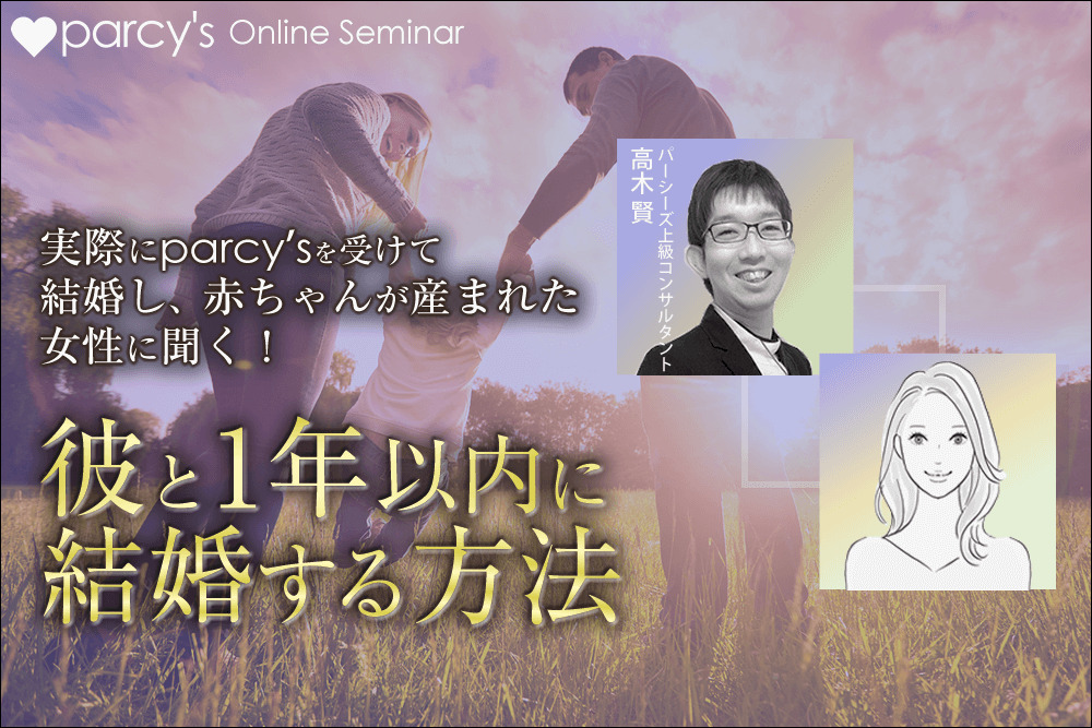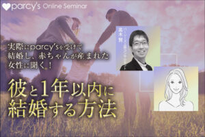 2022.11.07 AKIRA 実際にparcy’sを受けて結婚し、赤ちゃんが産まれた幸せな結婚生活をしている女性に聞く!「彼と1年以内に結婚する方法」 FacebookでシェアTwitterでシェア FacebookでシェアTwitterでシェア parcy's note(パーシーズノート) > ランディングページ > 11月13日・16日parcy’sオンラインセミナー『実際にparcy’sを受けて結婚し、赤ちゃんが産まれた幸せな結婚生活をしている女性に聞く!「彼と1年以内に結婚する方法」』 > 実際にparcy’sを受けて結婚し、赤ちゃんが産まれた幸せな結婚生活をしている女性に聞く!「彼と1年以内に結婚する方法」