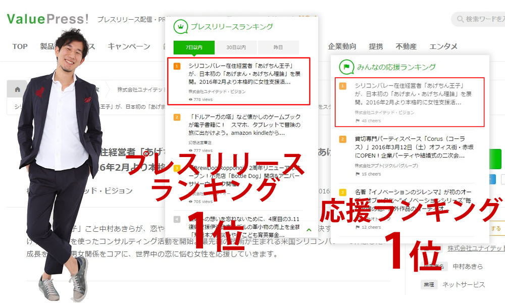 2月22日に出したプレスリリースが、なんとアクセスランキング1位、応援ランキング1位を獲得しました!
