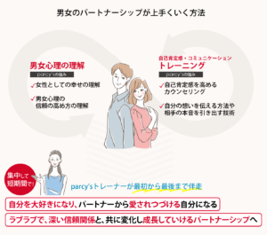 2022.06.12 AKIRA reason_partnership FacebookでシェアTwitterでシェア Tweet FacebookでシェアTwitterでシェア parcy's note(パーシーズノート) > Full width page > ビジネス > 特集・まとめ > 恋愛・結婚のパーソナルトレーニング「parcy’s」の口コミ・受講風景・評判と1年以内に結婚できたお客様の声まとめ > reason_partnership