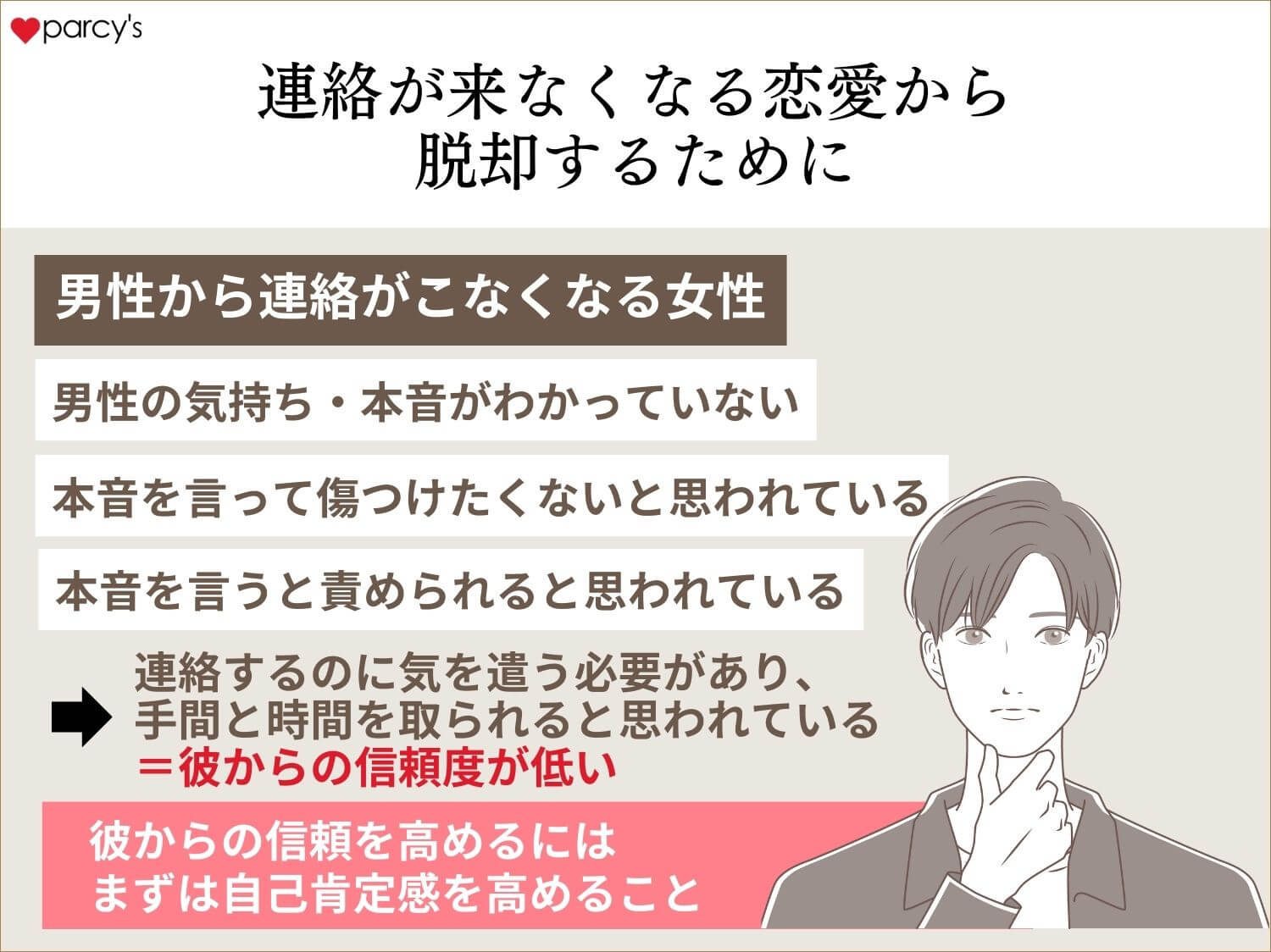 特に過去のやり取りで女性から責められることが多かった場合、そういった状況を避けようとして急に連絡がとれなくなることも多い。