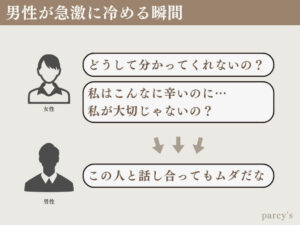 2022.12.13 AKIRA 男性に限らずパートナーシップにおいて急激に冷めてしまう瞬間 FacebookでシェアTwitterでシェア Tweet FacebookでシェアTwitterでシェア parcy's note(パーシーズノート) > Full width page > parcy’sメソッド > 本音を聴く技術 > 【男性心理・図解】男性が急激に冷める一言!彼が冷めてしまう理由とは? > 男性に限らずパートナーシップにおいて急激に冷めてしまう瞬間