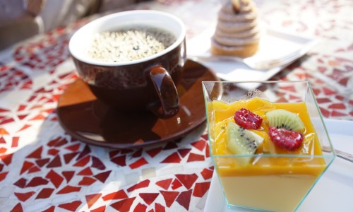 コーヒーとマンゴープリンとモンブランケーキを注文。