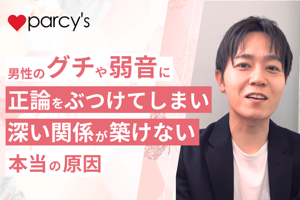 こうしたら?ああしたら? と頼まれてもいないのにアドバイスをしているとしたら、男性のプライドを傷つけてしまっている。 男性が求めているのは、アドバイスではなく「信頼」なのだ。 何をやってもうまくいかないときは「ぼくにはできないのかも」と自信を失ってしまうもの。 だけど、彼に対する不満や不安が消えない状態で、「大丈夫」と伝えても、あなたの心の声はそのまま彼にも伝わってしまう。 どれだけ男性心理や恋愛テクニックを知識として蓄えても、自分自身のあり方を変えていかない限り、現実は何も変わっていかない。 いいかい? 彼のありのままを受け入れられないと悩む女性ほど、ありのままの自分を認められていない。 彼に心の穴を埋めてもらったり、認めてもらうことで自分を満たそうとするから、彼に対する期待も大きくなる。その結果、彼を変えようとしてしまうことになってしまう。 そうならないために大切なのは、ありのままの自分を認め、「私は愛されるべき存在なんだ」と心から思えているあなたになること。 そんなあなたになることが、自分らしい幸せな結婚を叶える最低条件なんだよ。 彼の弱音や愚痴に正論をぶつけず、彼に寄り添って信頼関係を築くために大切なのは、受け止められず否定してしまうブレーキとなっている思い込みを解放していくこと。 そもそも、 原体験となった自分自身の過去と深く向き合い、原因を見つけていこう。 きっと子どもの頃の両親との関係や、家族との関係と向き合っていく中で、色々な感情が出てくるだろう。 「本当は父からもっと愛されたかった」 そんな一つひとつの感情に目を向けて、まずはありのままを抱きしめてあげてほしい。 そのうえで、これからは 未来に目を向けて、自分と深く向き合っていこう。 「自分と向き合う」とは、大切な人の話にじっくりと耳を傾けるように、さまざまな理由で見れなくなった本音をもう一度感じられるようにすることだ。 自分としっかりと向き合うと、自分自身との信頼関係も築いていける。 そして彼に対しても心から信頼を与えられるあなたになっていく。 自分と向き合えた深さの分だけ、愛する人やパートナーと向き合うことができるということを忘れず、 そんなあなたになれば、彼は深く信頼し、誰よりも愛し、彼にとって「絶対に手放せない最後の女性」になっていけるからね。 いかがだっただろうか。 恋愛も結婚も仕事も、行き詰まりを感じた時にまず向き合うべきは「あなた自身」なんだよ。 「何で彼はあんなことを言ってたんだろう」 どんな時も、まずは自分自身と向き合い、幸せな結婚を止めているブレーキを外していくこと。 それがいつまでも愛され続ける幸せな結婚を叶えるための道だからね。 あなただったら絶対に大丈夫だよ。 ただし、自分一人でブレーキとなっている思い込みや原体験と向き合うことが難しいと感じたり、向き合っても本当の原因が何なのかわからず前に進めないという人は多い。 だから恋愛・結婚のパーソナルトレーニング「parcy’s」がある。 parcy'sのリバリューメント®︎プログラムでは、男女2名のプロトレーナーがただの結婚ではない、心から信頼し合い・一生愛し合える、あなたらしい幸せな結婚の実現まで伴走してくれる。 幸せな結婚や信頼し合える相手との未来に進みたくても進めない…その原因となる大ブレーキを踏んでいるあなたのこじらせポイントを根本から解消していくことができる。 自分が本当に大切にしたいものを深く理解し、自己肯定感を高めて、自分もパートナーのことも心から信じることができるようになる。 その結果トレーニングをうけた「アラフォー・アラフィフ」「長期の婚活迷子」「こじらせ」「男性不信」「一方的な別れを繰り返す」など婚活・再婚活に悩む女性の60%以上が、1年以内に気になる男性や、恋人未満の彼・うまくいってなかった彼との結婚に進み、トレーニング後の離婚報告0%を実現している。 まずはparcy's個別相談&説明会を受けてみよう。 ぼくたちが全力でサポートしていくからね。 あなたの結婚をつかみとる力&1年以内の結婚確率を診断してみよう。恋愛・結婚のパーソナル診断「parcy’s診断」では、企業で用いられる適性検査レベルの高精度分析アルゴリズムにより、あなたが抱える結婚の課題と改善点が一目でわかるようになっている。 診断した方には、”ひとり”の人生を抜け出し、自分らしい幸せな結婚を叶えるための厳選コンテンツも特典としてプレゼントしているよ。 \無料&簡単5分/ parcy'sの厳選コンテンツで送られてくる質問フォームにあなたの悩みや疑問を送ると、ブログで中村あきらが回答してくれるよ。ぜひあなたの疑問や悩みを気軽に送ってみよう。