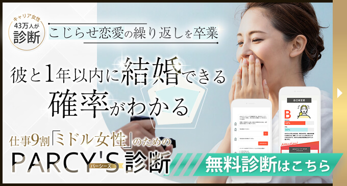 2024.08.15 AKIRA parcy’s診断 FacebookでシェアTwitterでシェア Tweet FacebookでシェアTwitterでシェア parcy's note(パーシーズノート) > Full width page > parcy’sメソッド > 自己肯定感を高める方法 > パーシーズ診断がリニューアルしました!彼と結婚確率がわかる診断へ > parcy’s診断