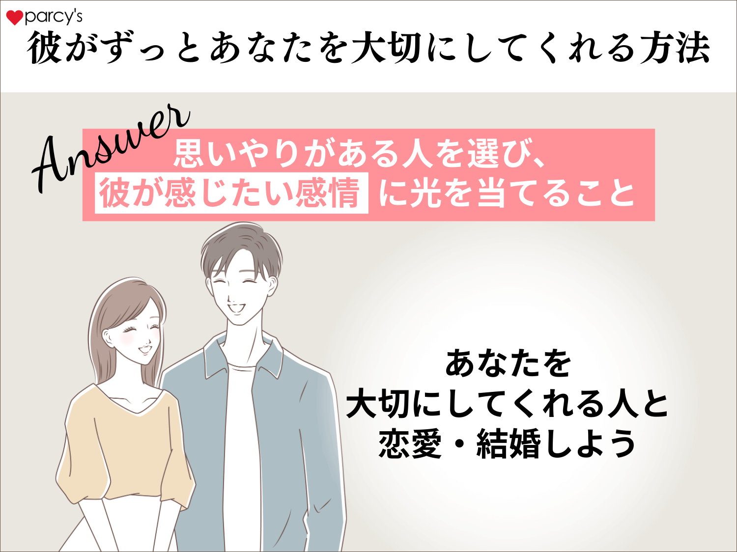 思いやりがある人を選び、彼が感じたい感情に光を当ててあげることで、彼はずっとあなたを大切にしてくれる