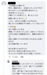 2022.09.11 AKIRA IMG_4771 FacebookでシェアTwitterでシェア Tweet FacebookでシェアTwitterでシェア parcy's note(パーシーズノート) > Full width page > parcy’sメソッド > 自分の想いを伝える技術 > 【お客様の声】初回パーソナルトレーニングの翌日に交際!?行動一つ一つを楽しむことが大切! > IMG_4771