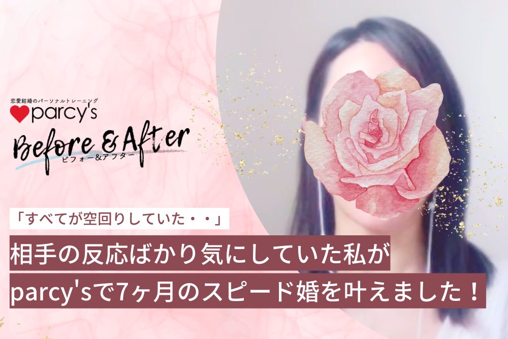 自己肯定感が低く、恋愛でも仕事でもうまくいかず悩んでいたあやこさんが、parcy’sでどのように変化し、仕事でも自己実現しながら幸せな結婚を手に入れることができたのか?