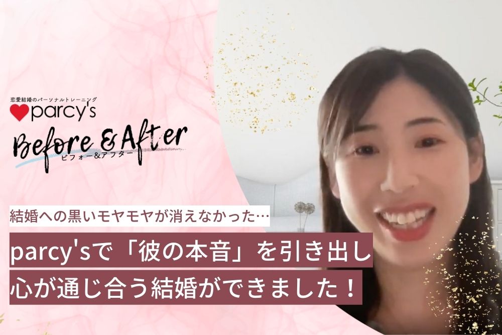 parcy’sトレーニングお客様の声!「嫌われないように私が頑張らなきゃ・・」恋愛でこじらせていた私が出会ってから7ヶ月で幸せな結婚を叶えました!