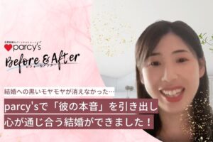 2023.08.19 AKIRA parcysnote_サムネイル FacebookでシェアTwitterでシェア Tweet FacebookでシェアTwitterでシェア parcy's note(パーシーズノート) > Full width page > parcy’sメソッド > 本音を聴く技術 > <動画>parcy’sトレーニングお客様の声!parcy’sで「彼の本音」を引き出せるようになり、心が通じ合う結婚ができました! > parcysnote_サムネイル
