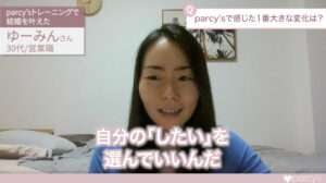 2023.07.08 AKIRA Screenshot 2023-07-08 at 14.56.36 FacebookでシェアTwitterでシェア Tweet FacebookでシェアTwitterでシェア parcy's note(パーシーズノート) > Full width page > parcy’sメソッド > 自己肯定感を高める方法 > <動画>parcy’sトレーニングお客様の声!仕事の優先1位の人生から一転。彼からプロポーズされ幸せな結婚を叶えました! > Screenshot 2023-07-08 at 14.56.36