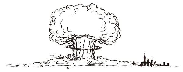 あなたは町はずれの丘の上から様子を見ているとしよう。最初に見えるのは、太陽よりはるかに明るい、目もくらむような光だ。この光は2、3秒で弱まり、次に火の玉が膨張したかと思うと、やがてキノコ雲になって空高く伸びていく。そして、轟音とともに爆発が起こり、木々はずたずたに引き裂かれ、家屋は粉々に破壊される。