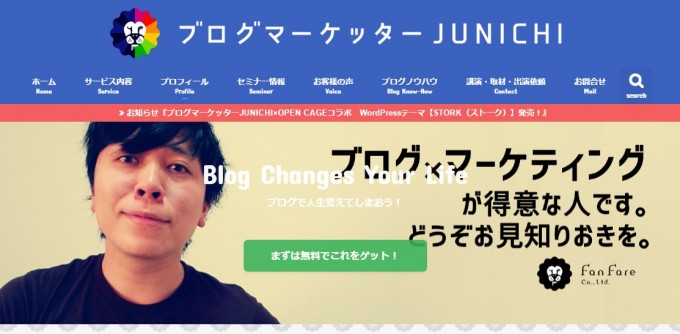 月間50万PVのブログマーケッターJUNICHIさんのブログは、wordpressテーマ「STORK(ストーク)」を使っている。
