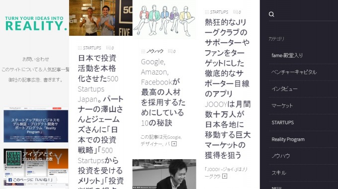 海外のスタートアップや起業家の記事を書いてあるだけあり、海外のwordpressテーマを使っている。