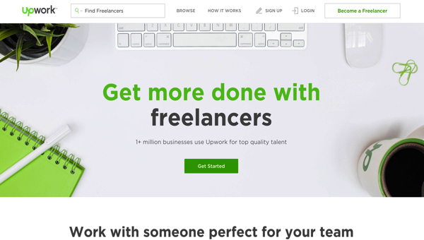 150万人のクライアントが存在するアップワーク(Upwork)(以前はオーデスクoDeskという名前)は、あらゆるタイプのフリーランスへ様々なものを提供してくれる。短期・長期プロジェクト。時給制、またはプロジェクトごとの作業、専門レベル、エントリーレベル別での仕事の取り決めが含まれている。どのような職業であっても、アップワークは何か提供してくれるだろう。