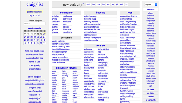 多くの人は、クレイグリスト(Craigslist)が様々なものを売買するだけのプラットフォームだと思っているだろうが、実際はフリーランスへの素晴らしい素材となっている。もしオフィスで何かが欲しい場合は簡単にオファーを探すことができるし、遠方で仕事をしたい場合には、主要都市ごとに検索することができる。