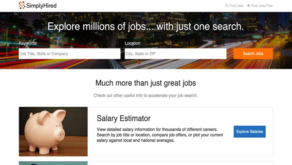 ほとんどの他のフリーランスプラットフォームよりもより広い範囲を備え、シンプリーハイヤード(SimplyHired)は、販売員から建設業者まですべての人にとってパーフェクトなものだ。雇用者のコメント、企業名や勤務場所をもとに検索できるブログが含まれている。