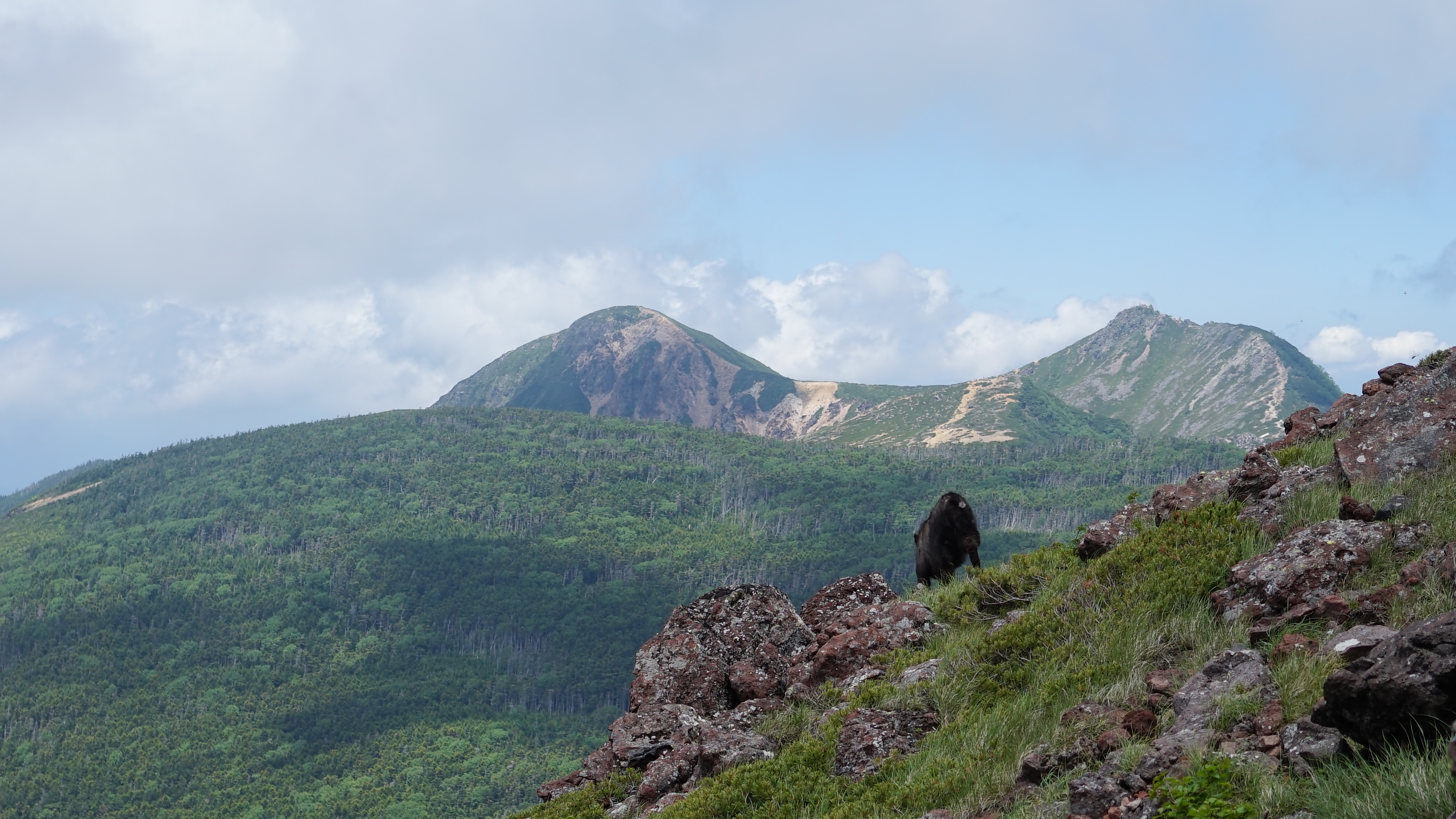 硫黄岳を超えたところに、ニホンカモシカが歩いていました。