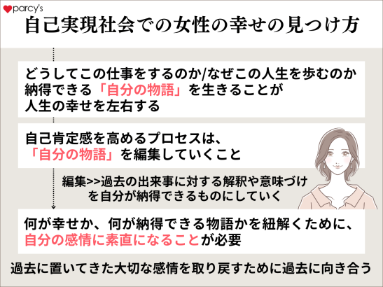 つまり、自己実現をして「自分の物語」を生きることで女性は幸せを感じられるようになっている。
